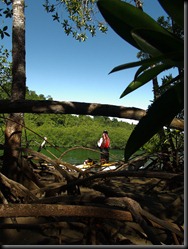 Surrounded by giant mangrove trees, some 50 feet tall, my mind instantly was thinking “we need to camp here and explore!”; Allie was also awe struck and we mutually decided to paddle up the river into the heart of the mangrove and consider a place to camp on return to the lagoon. This was a pristine and diverse mangrove forest, at least 4 species of mangrove existed here, some as tall as 50 feet with big leggy roots, others a tangled mass of tangled support roots and twisted trunks, some had buttressed roots like the fins on a rocket ship. It was a beautiful place and a prime example of how amazing these, often misunderstood and underappreciated, forest are.